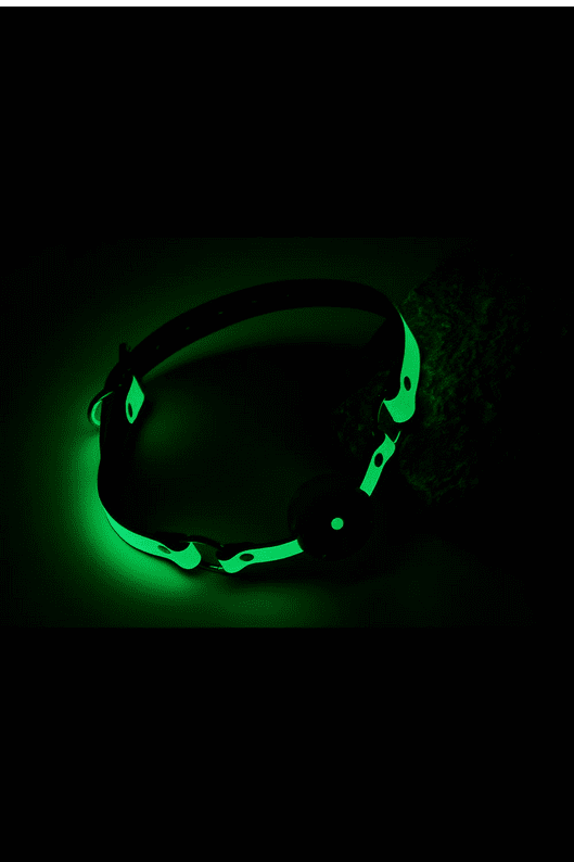 •Bâillon phosphorescent •Avec boule en silicone solide •Diamètre de la boule : 4 cm •Doublure douce Ajustable avec fermeture à boucle