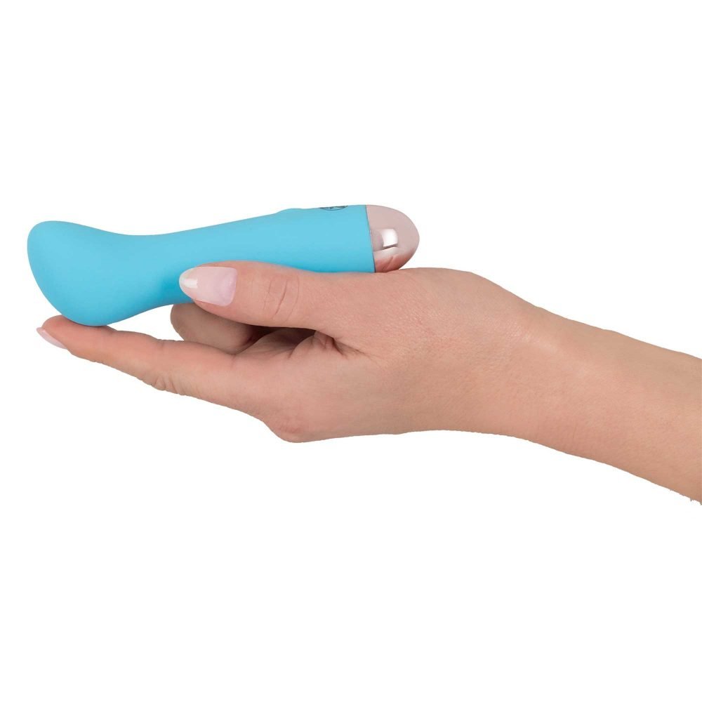 Mini vibrateur bleu avec une courbure parfaite pour le point G ou pour le clitoris. Avec 7 modes de vibration différents et rechargeable avec le câble de chargement USB inclus. Manipulation facile et design élégant. Imperméable à l’eau.
