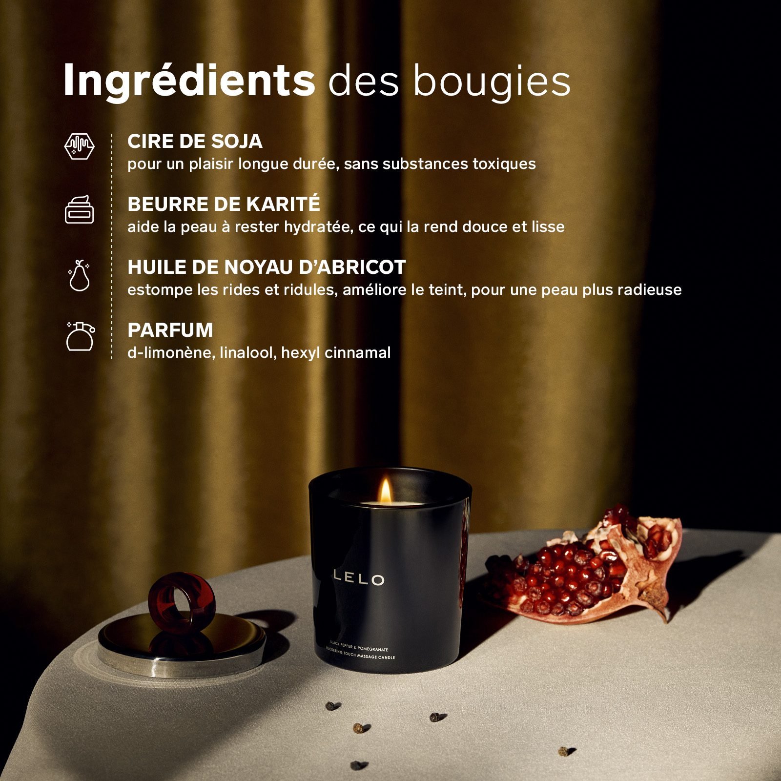 La Bougie de massage Lelo est 100 % naturelle et ne contient pas de conservateurs. Elle est en verre avec un design très luxueux pour avoir sa place partout dans la maison.