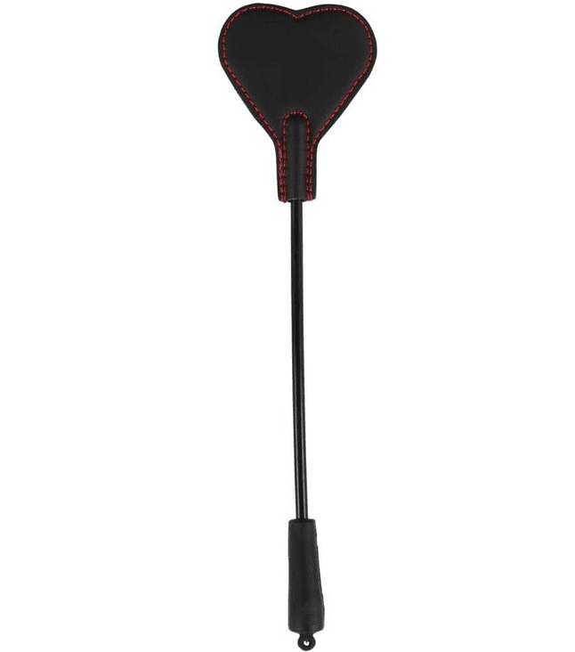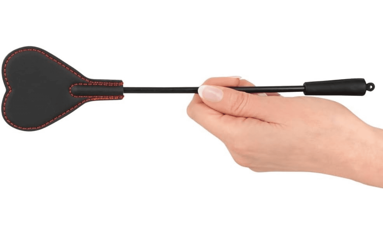 Pour des frappes douces / dures d’amour! Cravache avec une double surface de frappe: d’un côté du cuir qui claque de l’autre une douce fourrure artificielle. Forme de coeur.
